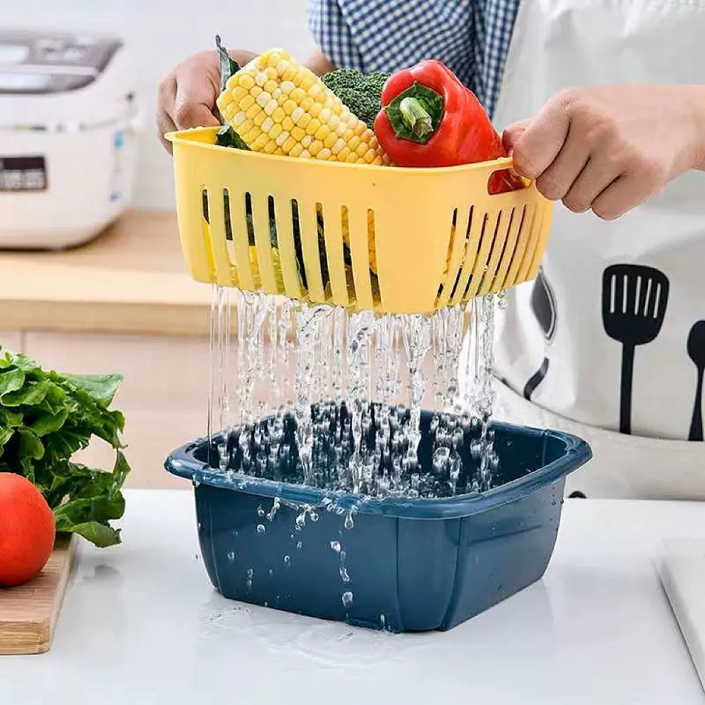 加厚双层家用带盖收纳篮