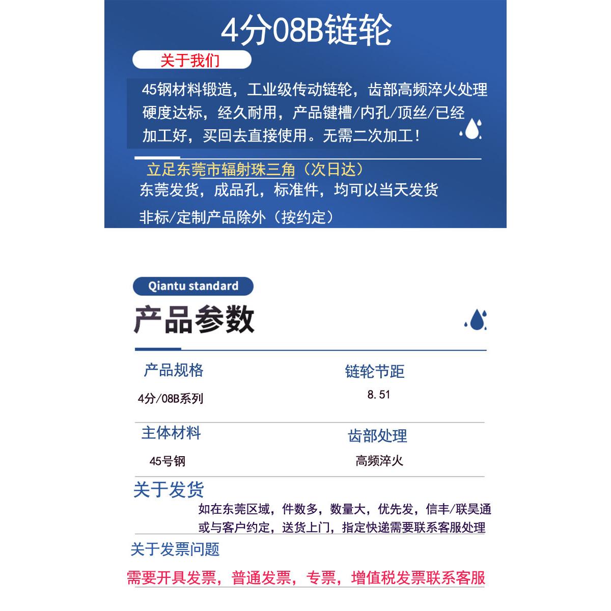 4分08B链轮齿轮12 14 15 16 17 18 20齿单排45号钢成品定 制加工