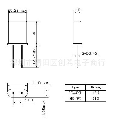 【晶振厂家】中科晶 晶振 智能流量表专用耐高温晶振49S 13.521M