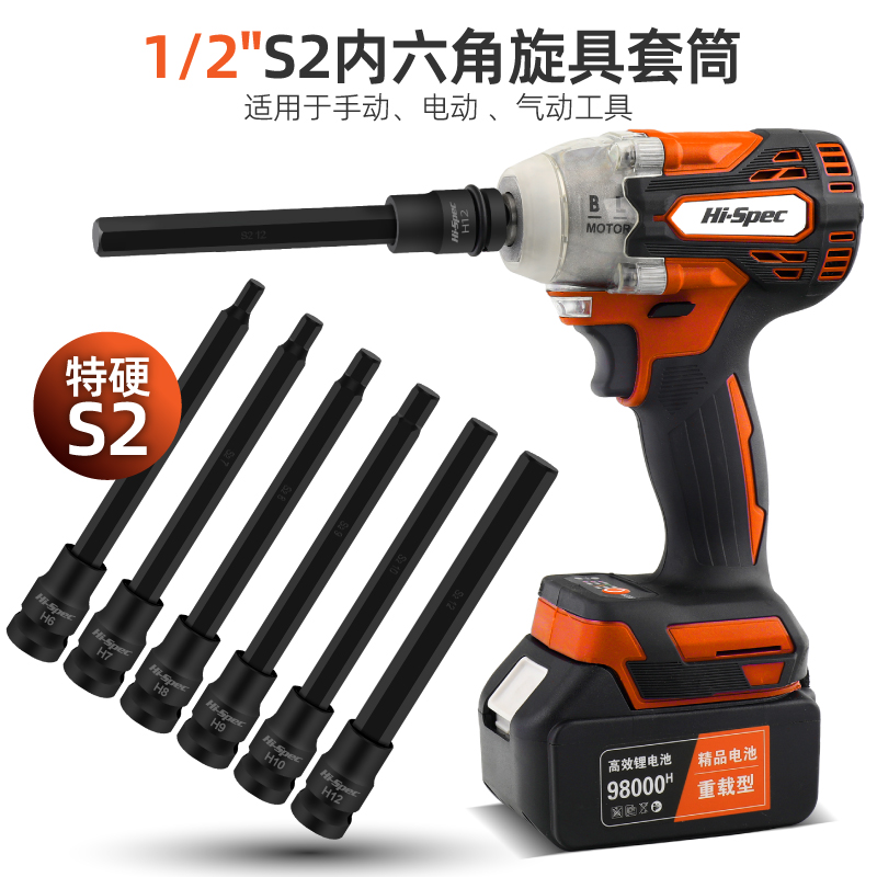 1/2大飞特长加长薄壁套筒加硬小风炮套筒专用内六角套头电扳手6角