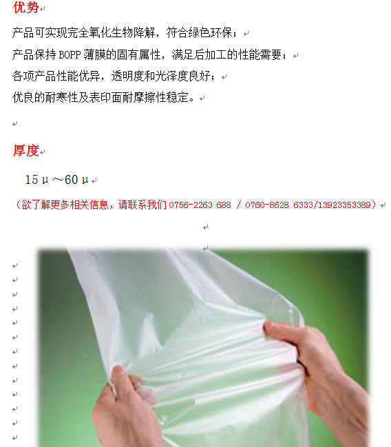 BOPP可降解薄膜哑膜光氧降解触感薄膜高透哑膜可降解薄膜