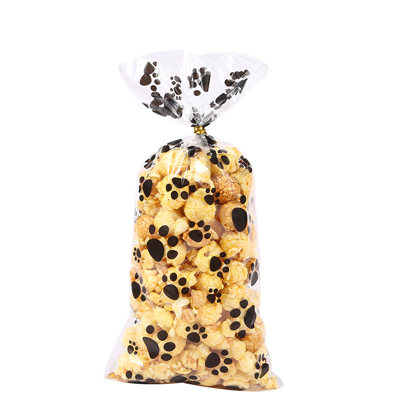 批发opp平口袋卡通小狗爪印花 透明糖果袋食品包装袋封口扎丝袋