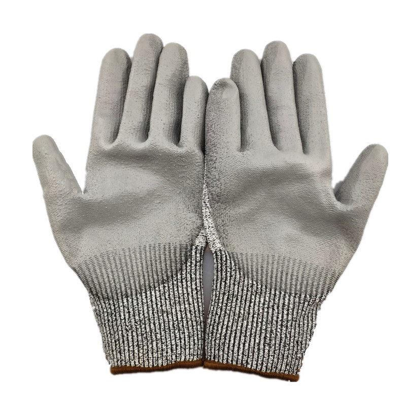 PU防切割手套5级玻璃加工防护屠宰场杀鱼保护针织防滑