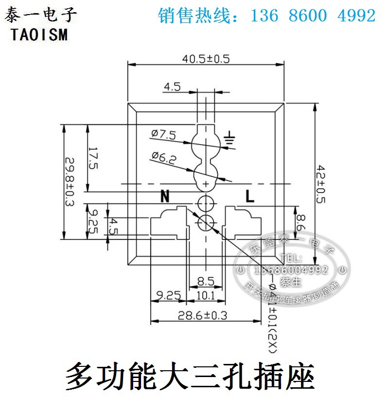 逆变器大三孔AC输入插座42*40全铜耐高温多功能大三孔母插座LH-08
