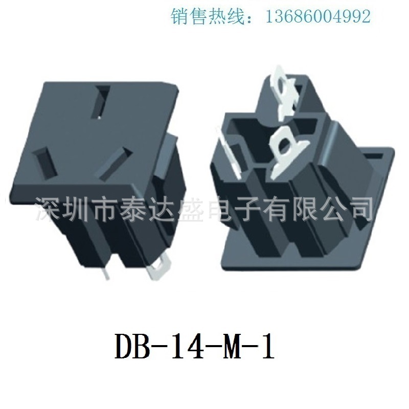 深圳供应多款安规认证三芯全铜大梅花AC电源插座DB-14-S-2P14P6