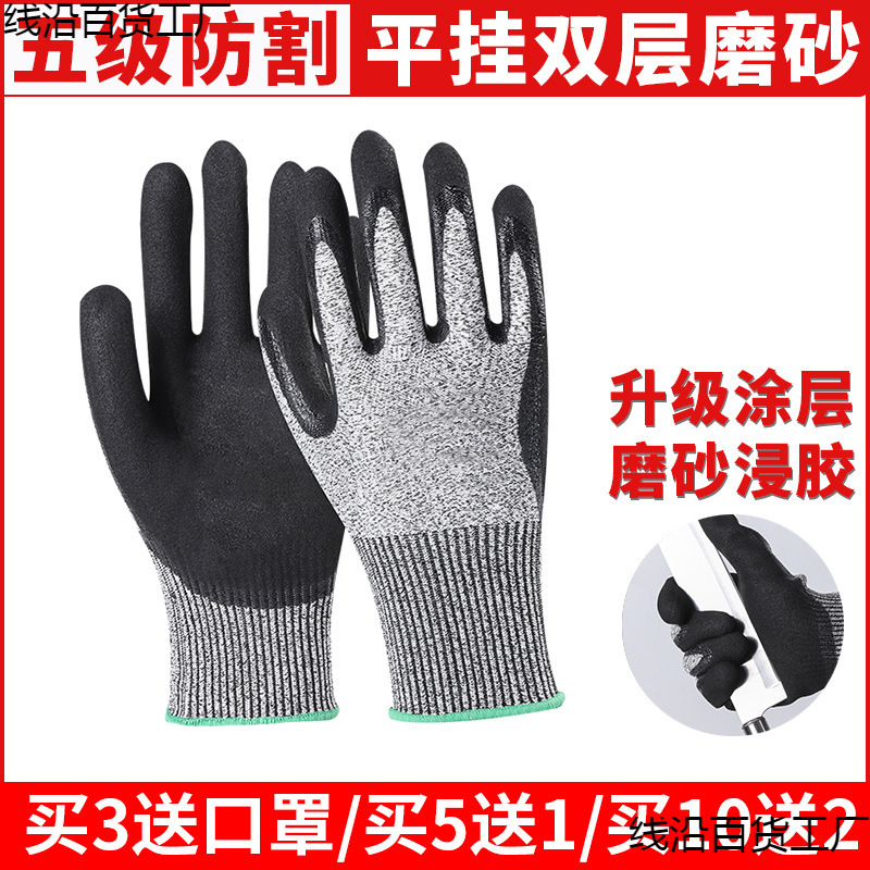 现货5级防割手套防切割手套防割PU手套防滑手套耐磨手套