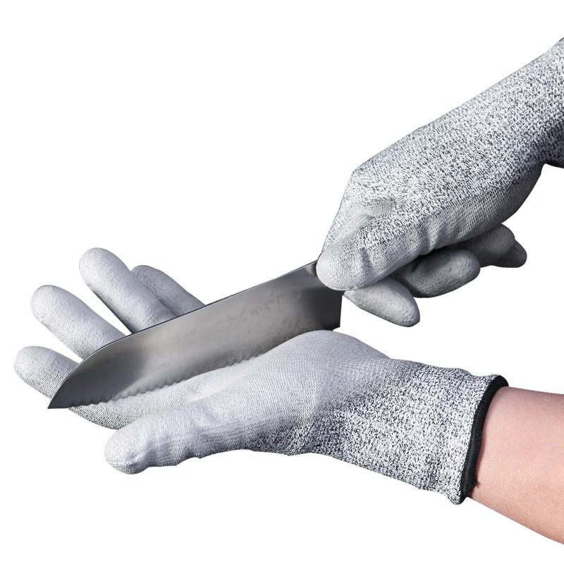 5级防切割手套 高强聚乙烯HPPE针织厨房防割手套木工屠宰浸胶手套