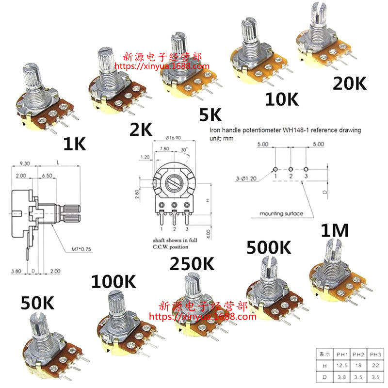 汽车功放电位器,音量电位器,单联电位器,塑封电位器