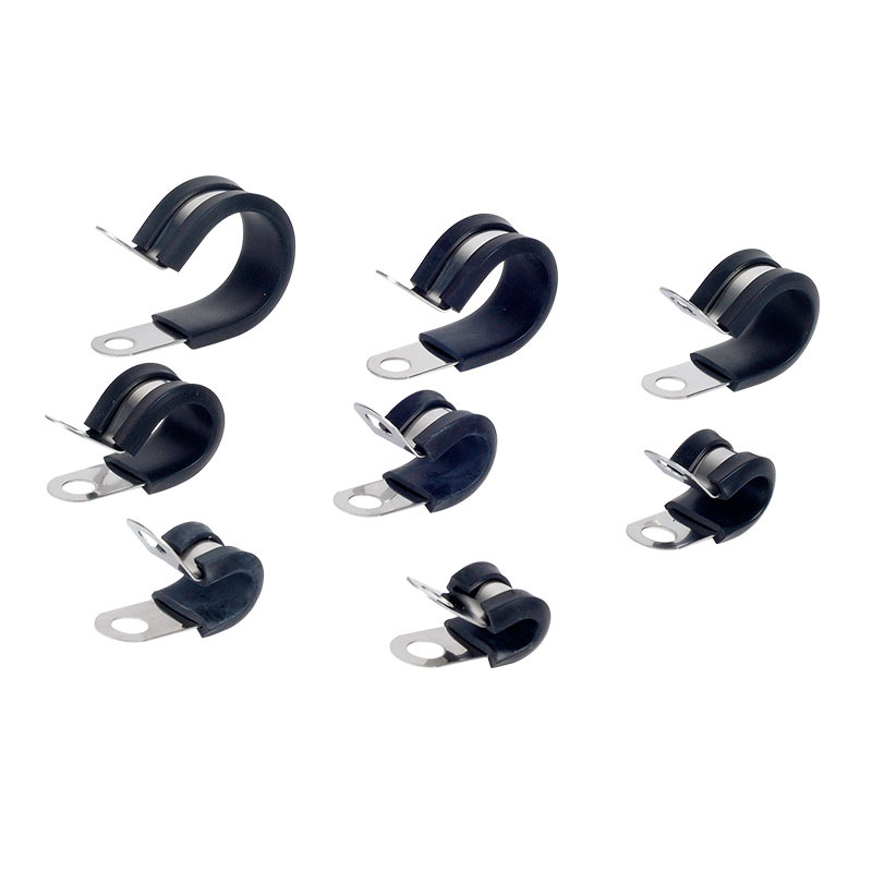 304不锈钢连胶条喉箍 R型胶条卡箍 电缆电线固定夹减震管卡抱箍