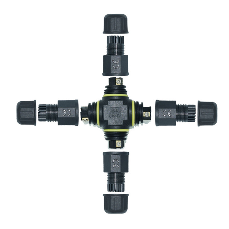 M16公母对接插头IP68防水三芯尼龙自锁接头直通电缆防水连接器
