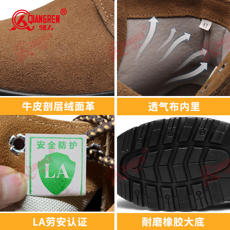 014带盖牛筋底劳保鞋防砸安全反绒牛皮翻盖耐磨加盖防穿刺劳保鞋
