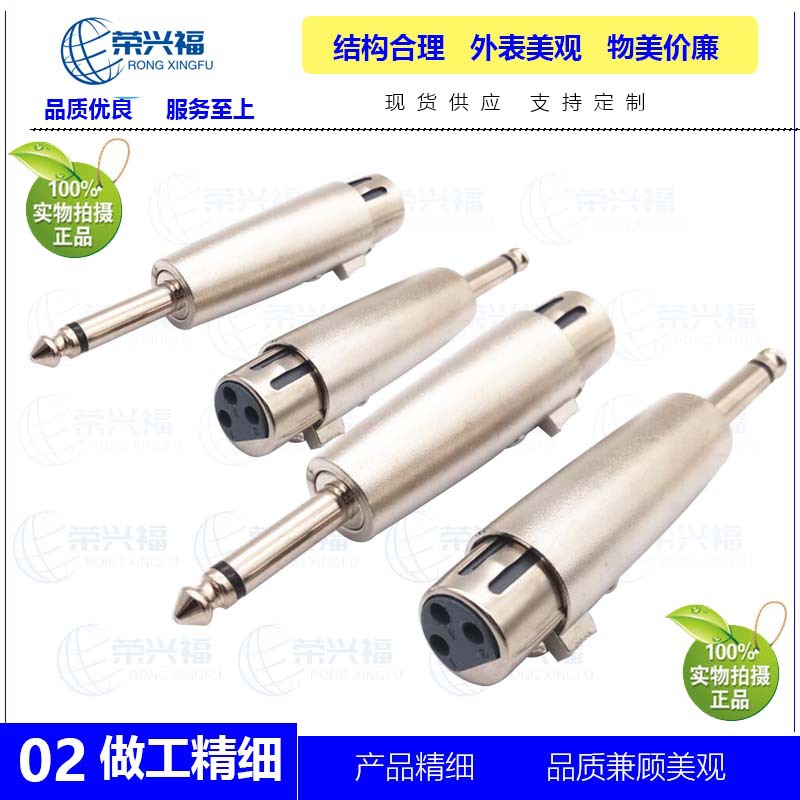 铜芯6.35转卡侬母头6.5大二芯转卡农母座麦克风转接头调音台话筒