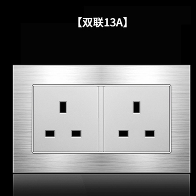 厂家直供现货13A多功能插座带开关二位墙壁插座0.5mm超薄英式插座
