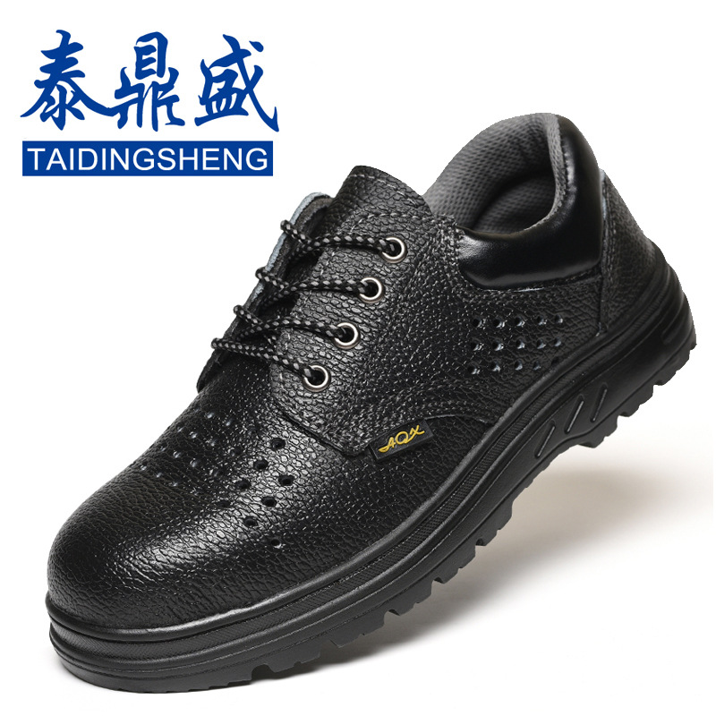 现货批发夏季劳保鞋牛皮鞋面防砸防穿刺男女劳保鞋休闲低帮透气款