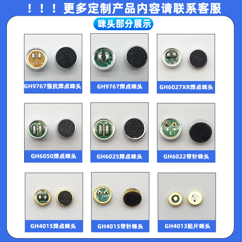 降噪咪头60276022内置管芯电容可订线长端子防水智能家居受话话筒