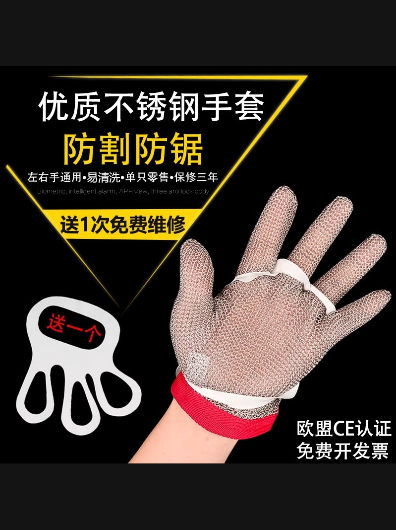 5IJO钢丝防割手套5级厨房杀鱼锯骨机裁剪防切割不锈钢铁手套钢环