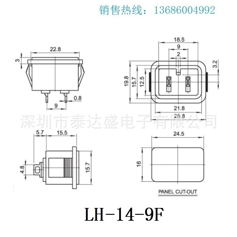 衡器充电电源两芯插座接口B尾带极性全铜短脚AC电源插座LH-14-9F