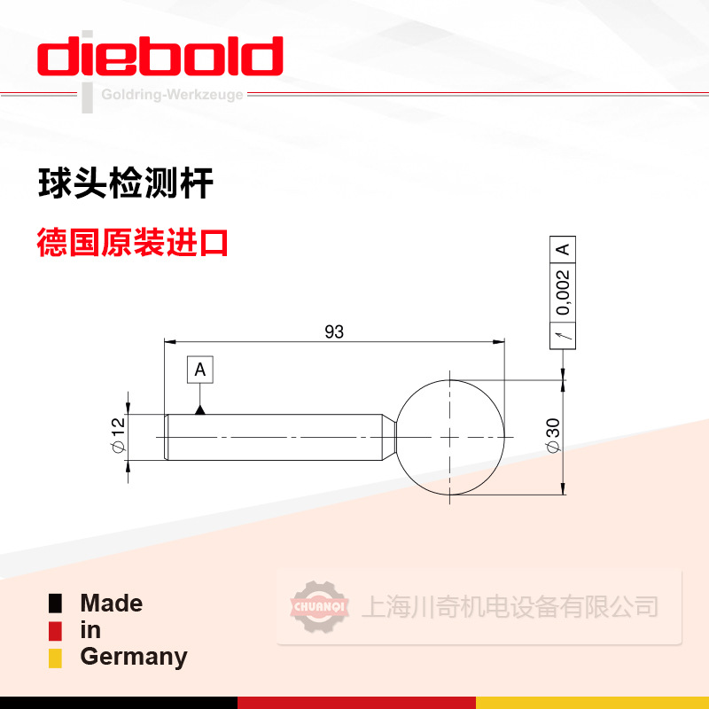 德国Diebold主轴检具-球头检测杆 检测球头72.000.742.030