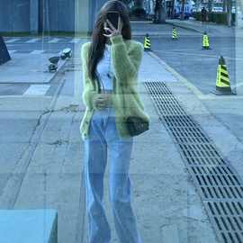 "海水吸满了温暖"慵懒绿色貂绒毛衣开衫外套新款清冷感女春秋